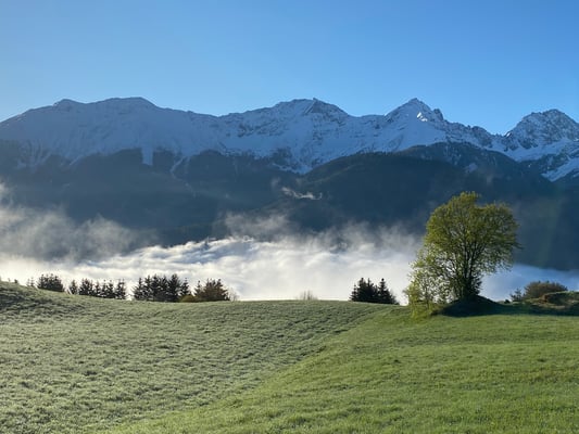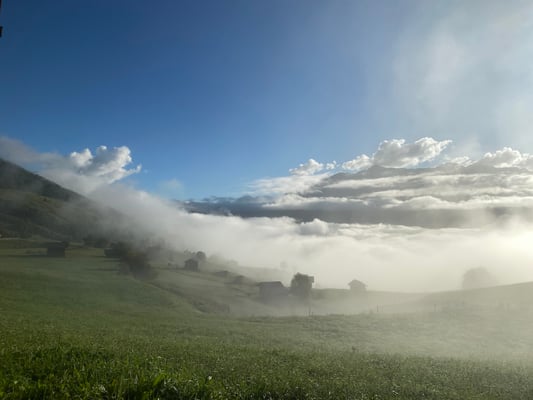 Das Schattenspiel der Berge und die Intensität sowie die unvergleichbaren Kombinationen der Farben, die sich in schneller Abwechslung offenbaren, wenn nach dem Regen die Nebel ein Schauspiel liefern, das die beste KI nicht zu produzieren vermag. Die Wolken, nachdem die Nebel aufgestiegen sind, haben ihre eigene Schönheit. Rückenschwimmend an der Oberfläche des kalten Bergsees sieht man diese weißen Skulpturen aus einer anderen Perspektive.