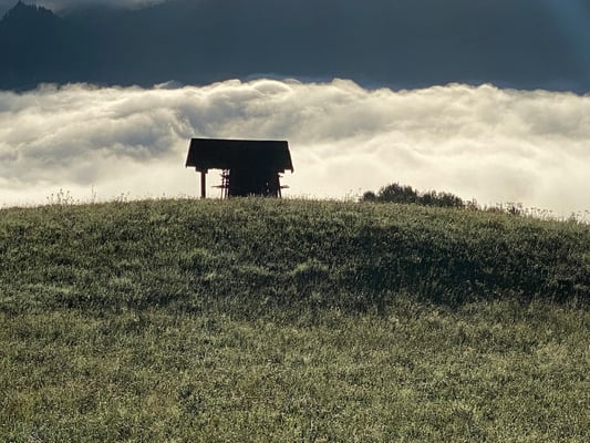 Die frische Luft lädt ein zum tiefen Durchatmen. Im dichten Nebel nichts zu sehen entschleunigt, weil jegliche visuelle Ablenkung verdeckt bleibt. Gewissermaßen eine Stille für die Augen.